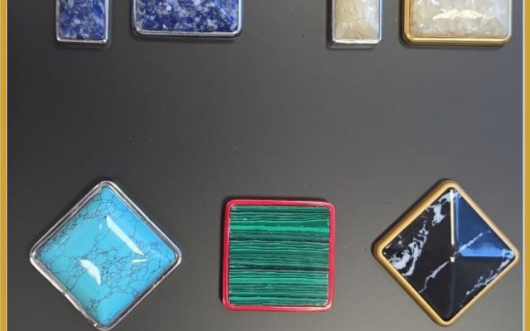 Exclusive and versatile solutions combining high-quality resin with natural inlays of mother-of-pearl, stones, and other reconstituted materials.