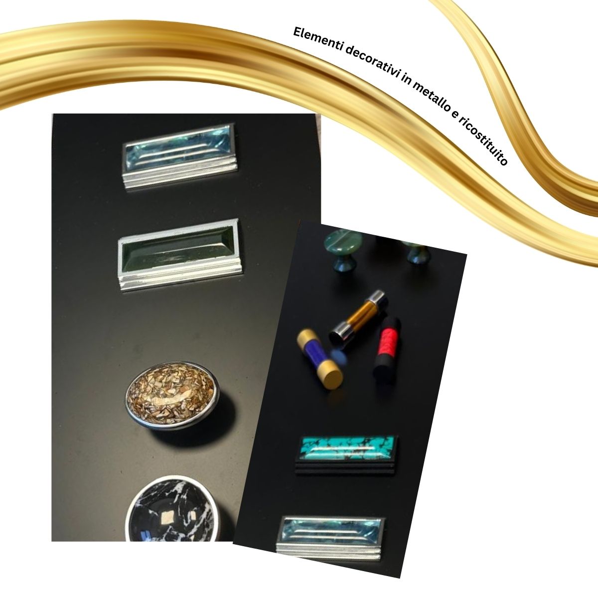 elementi decorativi in metallo e materiale ricostituito